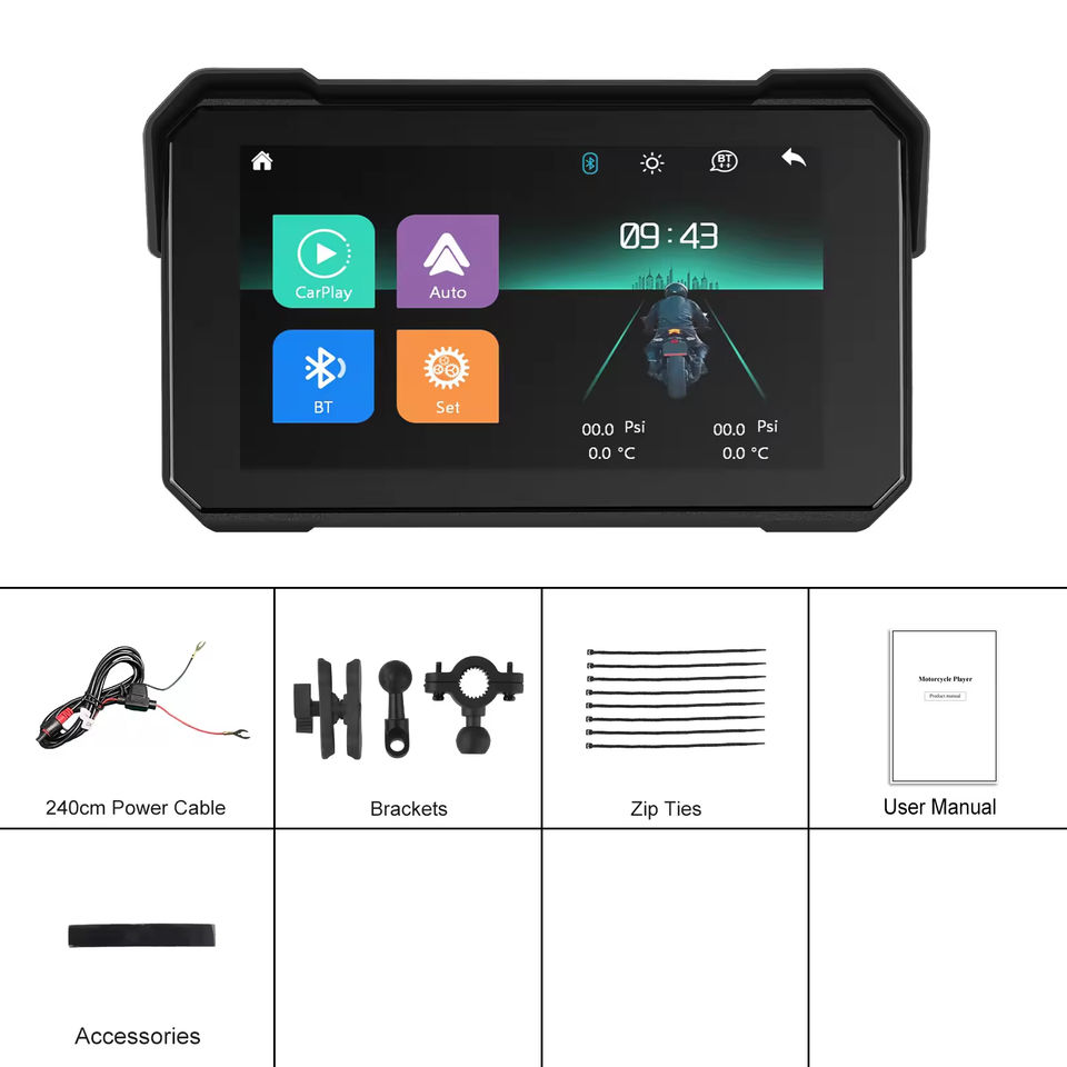 Autoradio étanche pour moto et voiture 5 pouces Podofo, écran IPS portable, CarPlay, Android Auto, Bluetooth, IP68, ODM personnalisé
