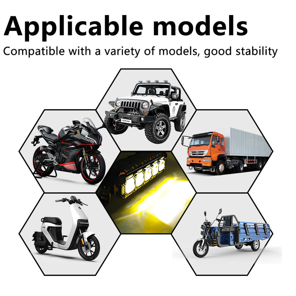 Phare de travail à 5 lentilles pour moto, projecteur LED blanc et jaune, feux clignotants, feux de route/croisement, phare antibrouillard pour camion, SUV, UTV
