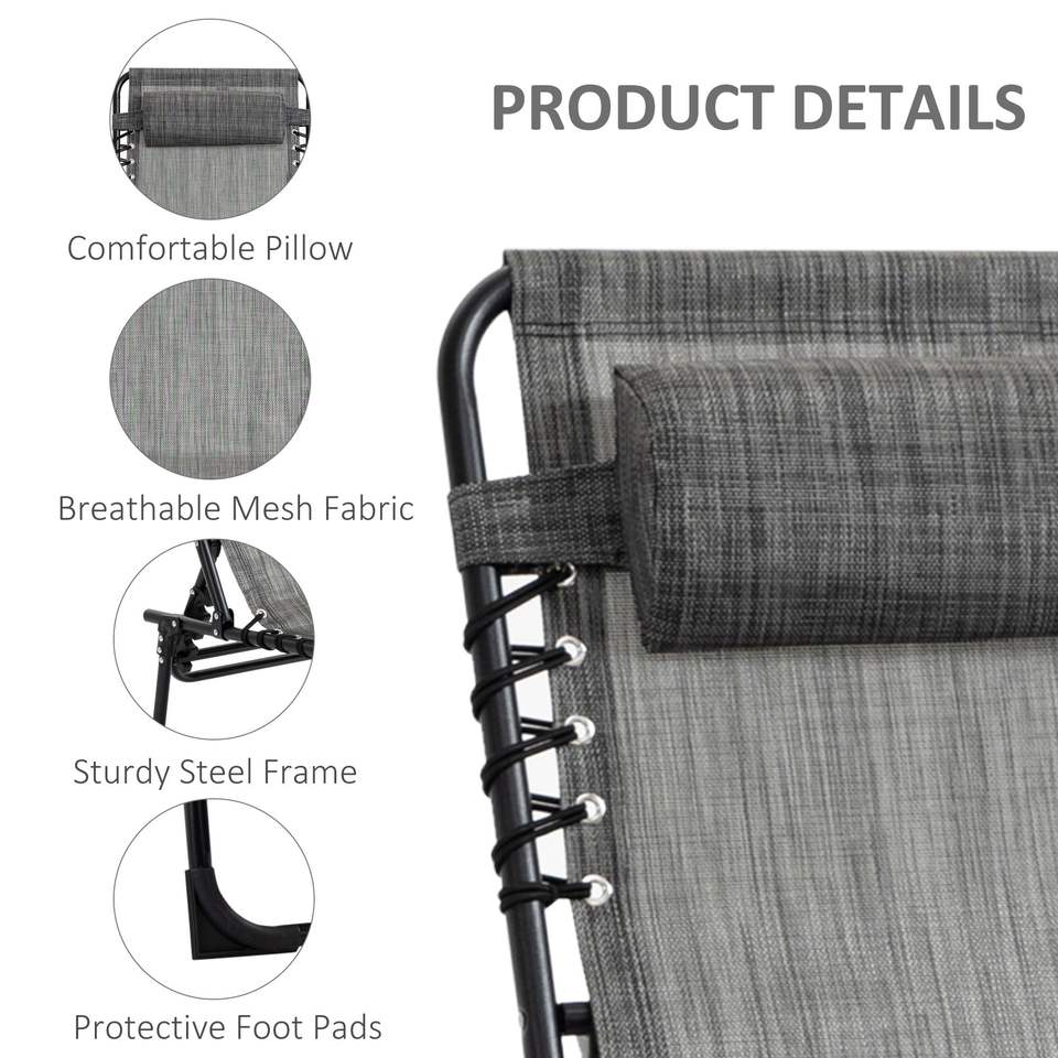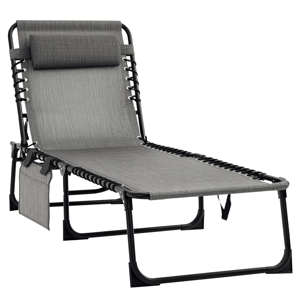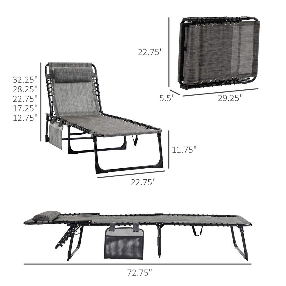 Chaise longue pliante réglable à 5 niveaux avec poche latérale en maille respirante pour patio et jardin, chaise longue grise
