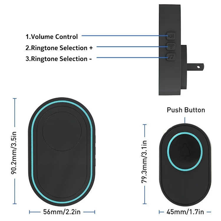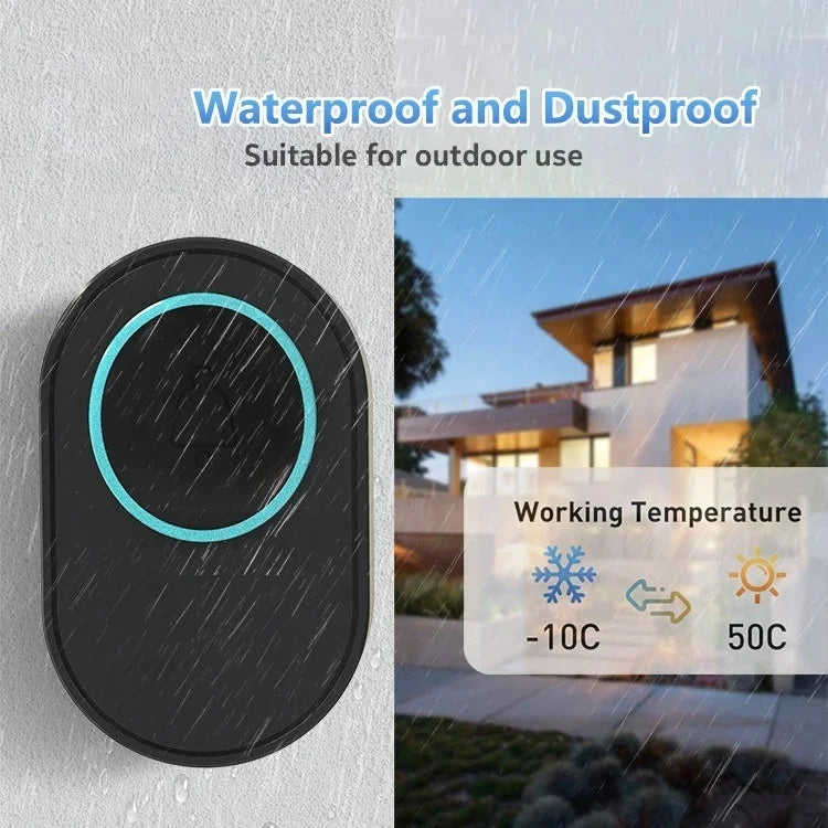 5 Levels Volume 433MHz 150M Door Bell Chime Ring Battery IP65 Waterproof Wireless DoorBell With EU UK US Plug