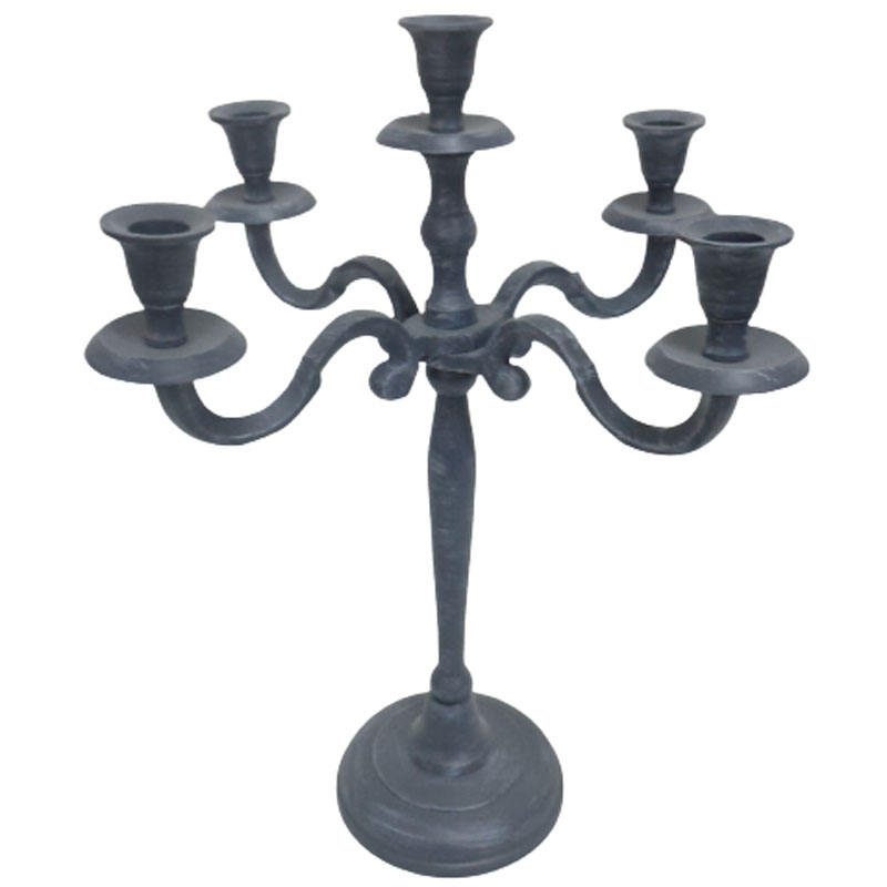 Bougeoir en métal décoratif à 5 lumières avec support de pilier à 5 bras avec dessus de table en nickel polonais décoratif