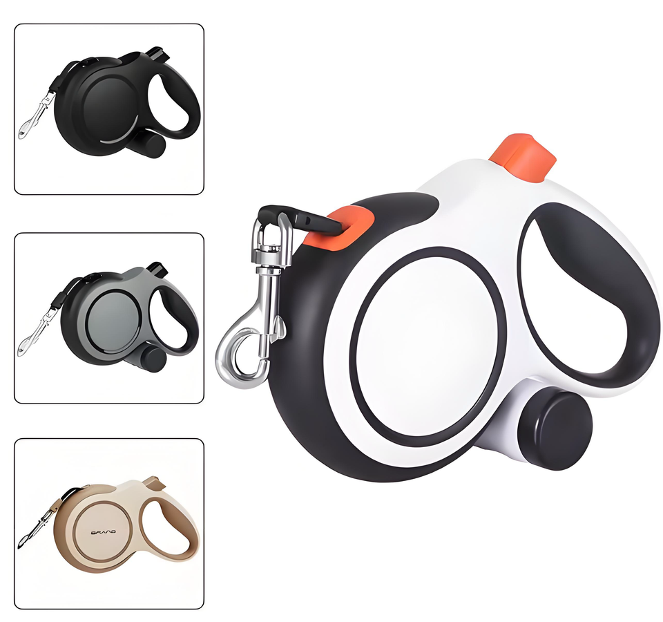 Laisse rétractable noire de luxe écologique et durable de 5 mètres avec porte-sac à crottes pour chiens
