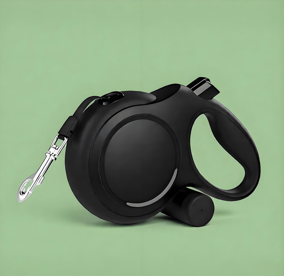 Laisse rétractable noire solide et durable de 5 mètres avec porte-sac à crottes pour chiens de 30 kg, luxe, mode, OEM ODM