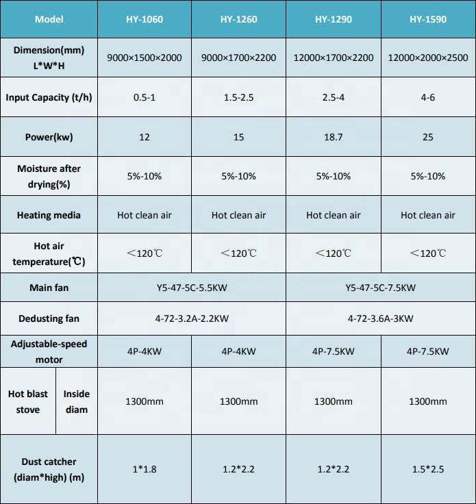 Capacité de séchage:1,0-3,8 tonnes/heure