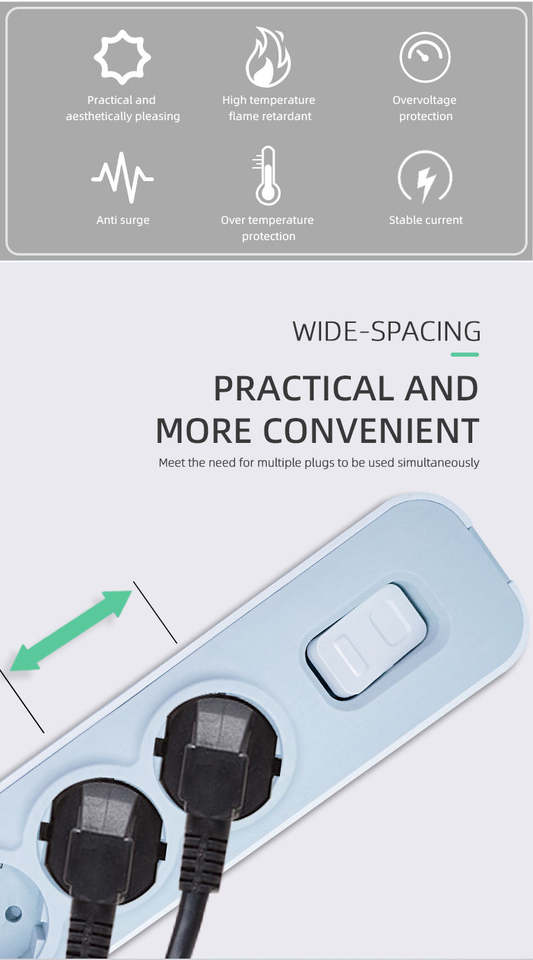 Multiprise anti-surtension 5 prises 16A 4000W pour usage hospitalier, avec protection anti-effraction, câble en cuivre 3*1.5mm, prise de table NOVA