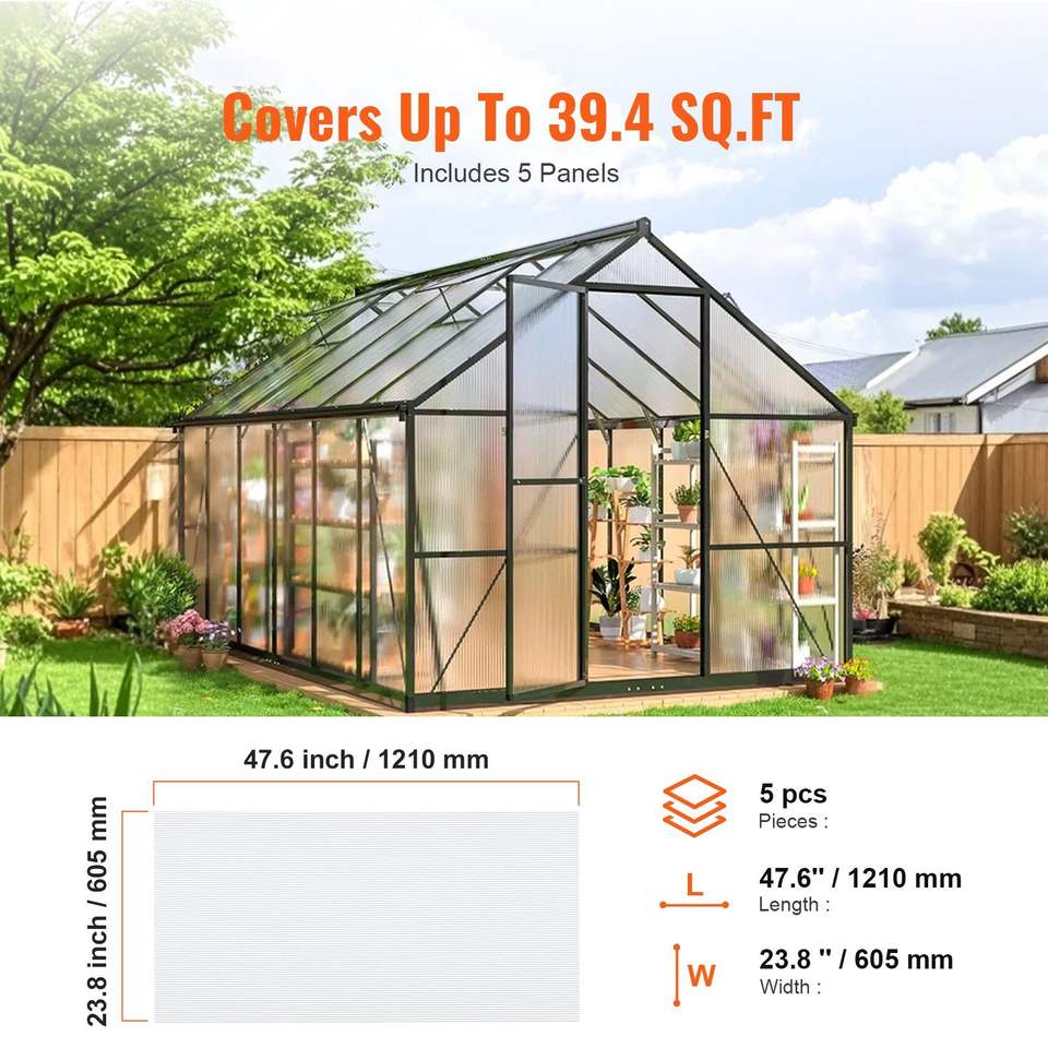 Lot de 5 panneaux de serre en polycarbonate 2' x 4' 0,32'' avec protection UV, tôles de toiture ondulées imperméables, tapis de cuisine anti-UV