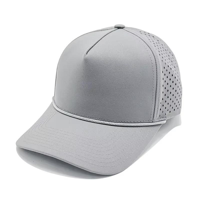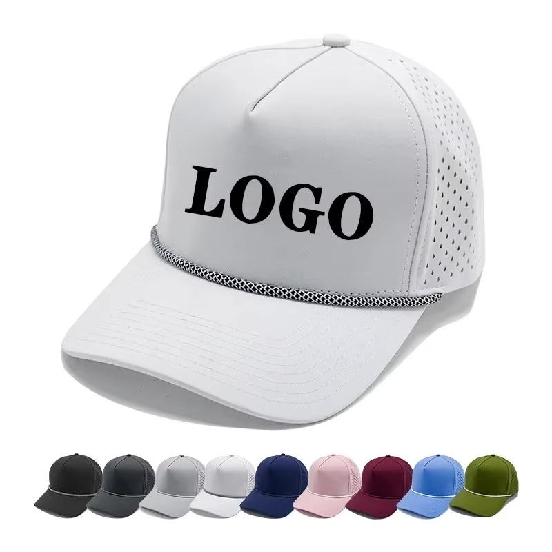 Casquettes de baseball 5 panneaux vierges perforées avec logo brodé personnalisé, chapeau de golf avec cordon pour homme et femme, fabrication vietnamienne