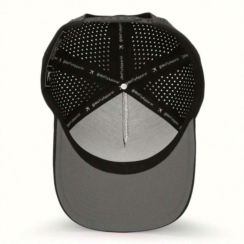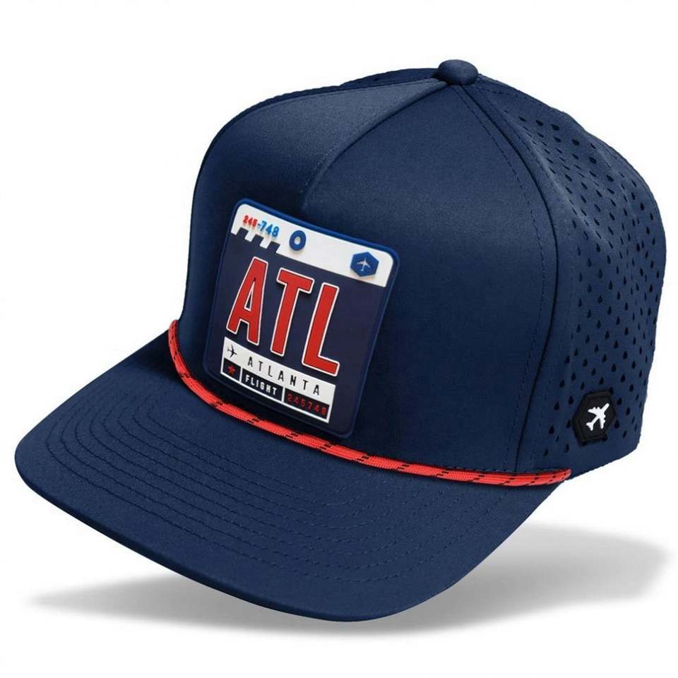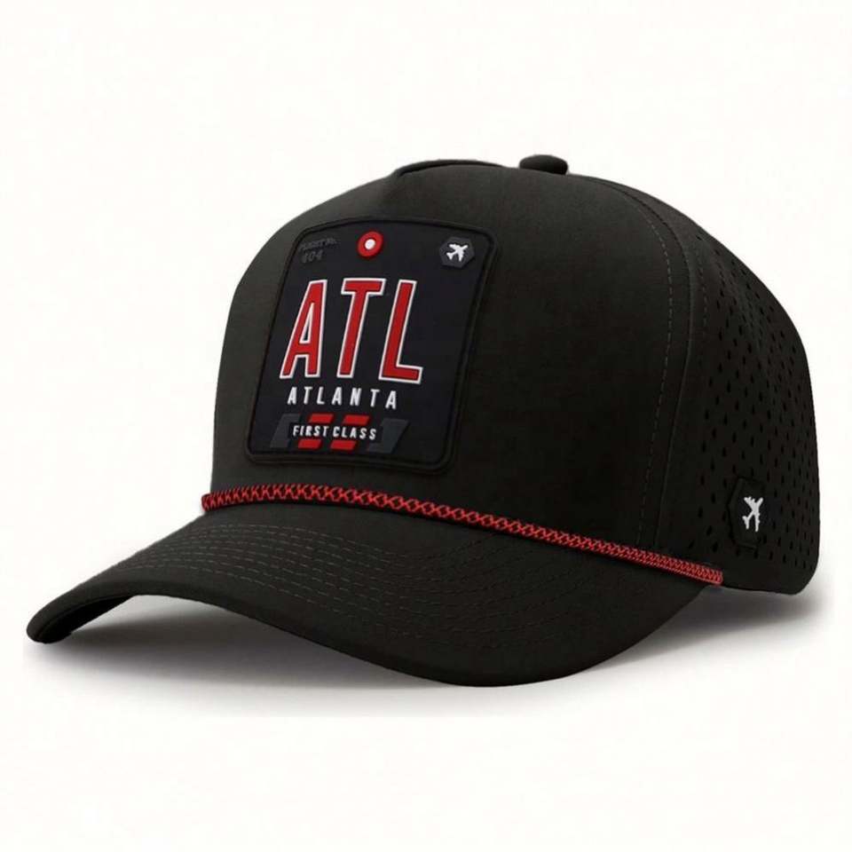 Casquette Snapback 5 Panneaux Écologique Imprimée Sérigraphiée avec Cordon, Chapeaux Personnalisés, Trous Aérés Découpés au Laser, Badge PVC Avant, Haute Qualité BSCI