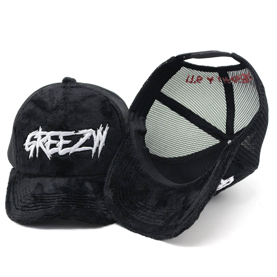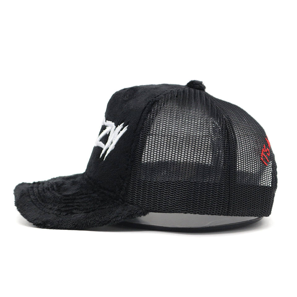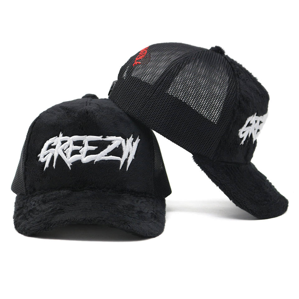 Chapeau en maille de camionneur en velours flou à 5 panneaux avec logo personnalisé brodé Casquette en gros