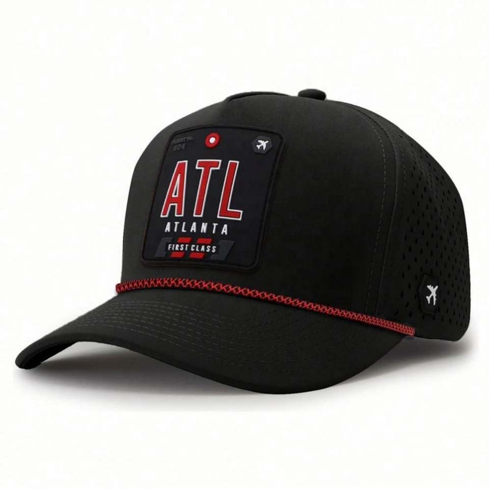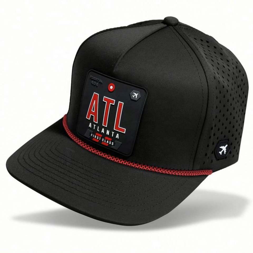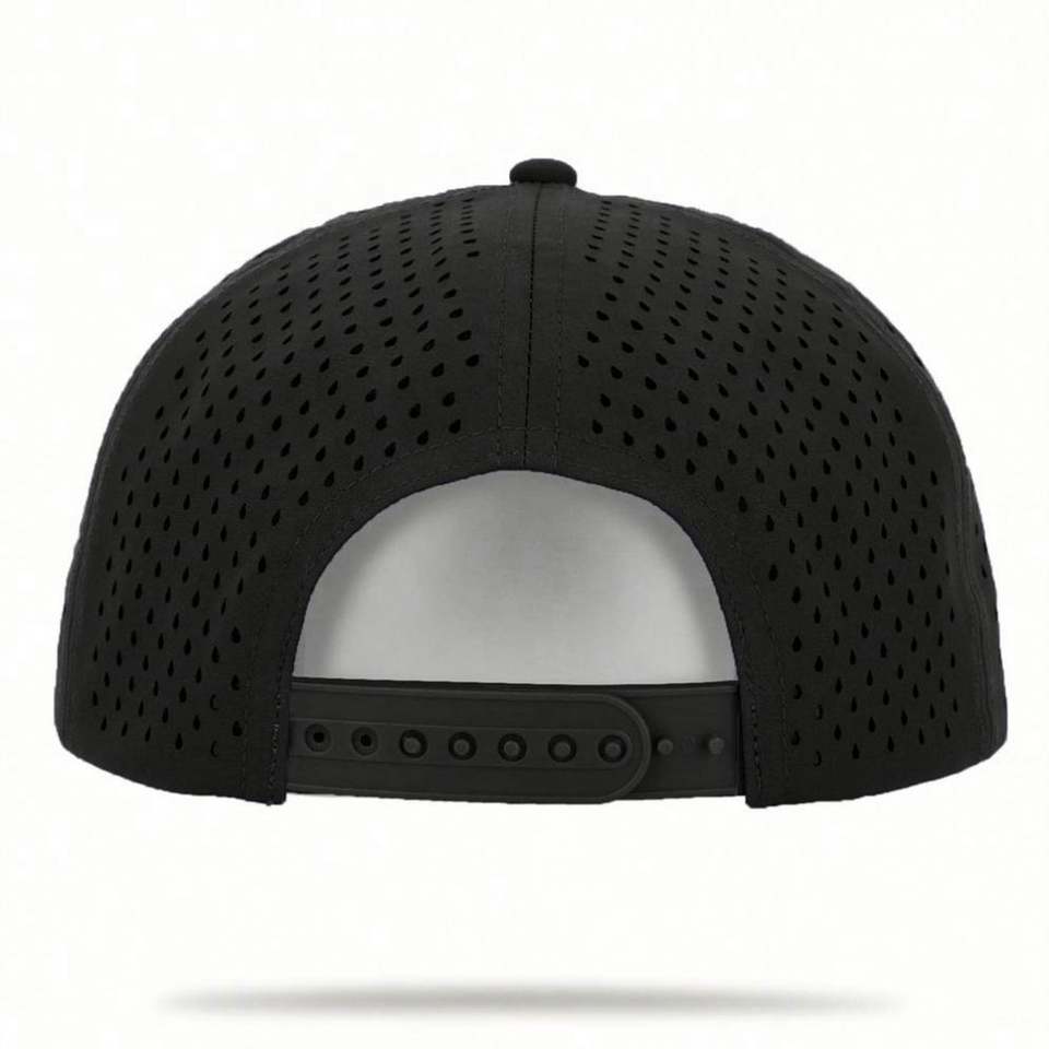 Casquette Snapback 5 Panneaux avec Corde, Chapeaux Personnalisés avec Trous Aérés Découpés au Laser, Badge PVC sur le Devant, Chapeaux de Haute Qualité, Fournisseur de Chapeaux BSCI