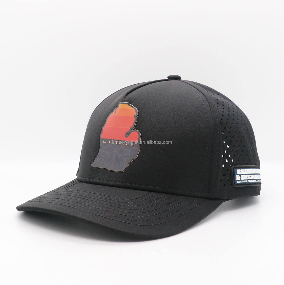 Casquette de baseball structurée à 5 panneaux avec motif à pois et lettres, 100 % polyester, casquette de sport unisexe réglable, fabriquée au Fujian