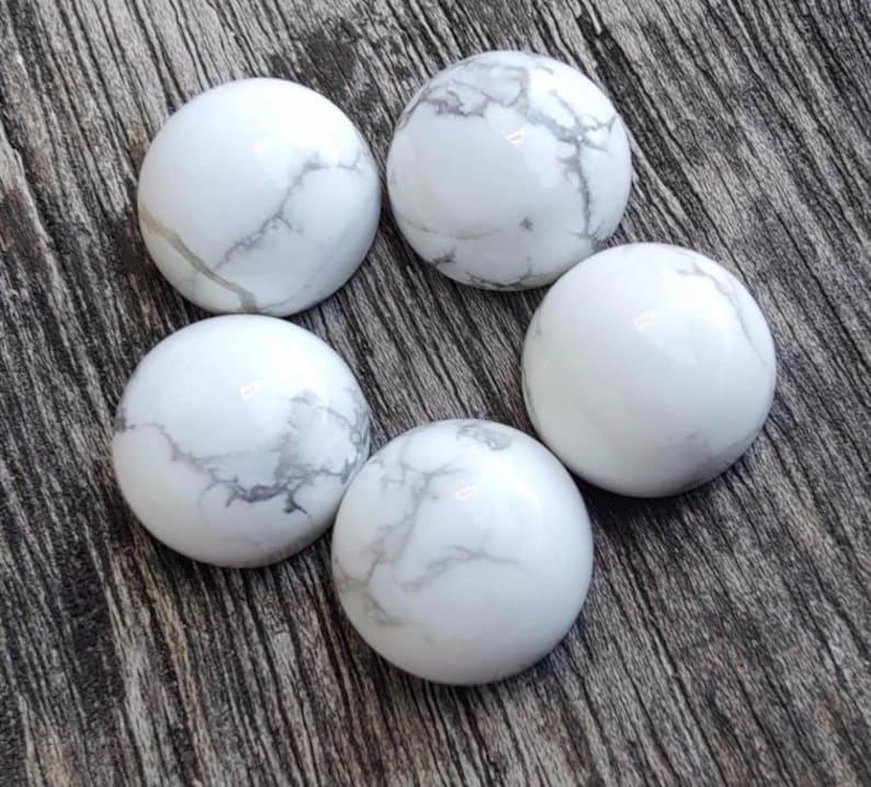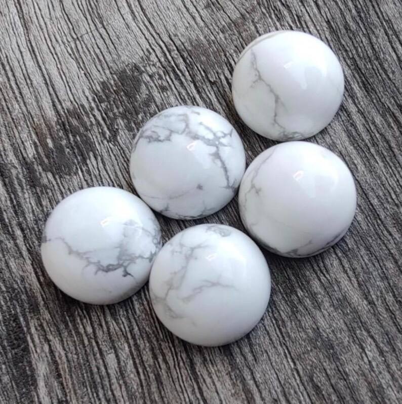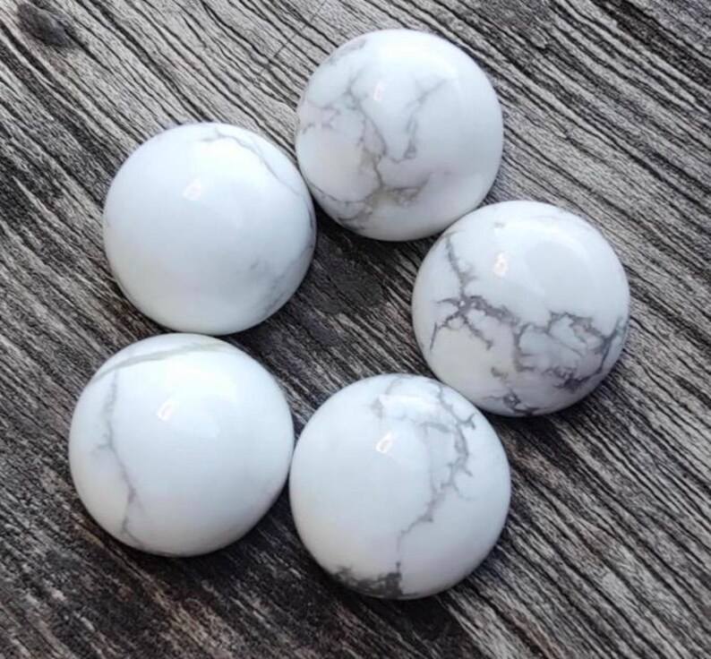 Cabochons en howlite, pierres précieuses rondes à dos plat, pierre polie de haute qualité pour la fabrication de bijoux, vente en gros, 5 pièces