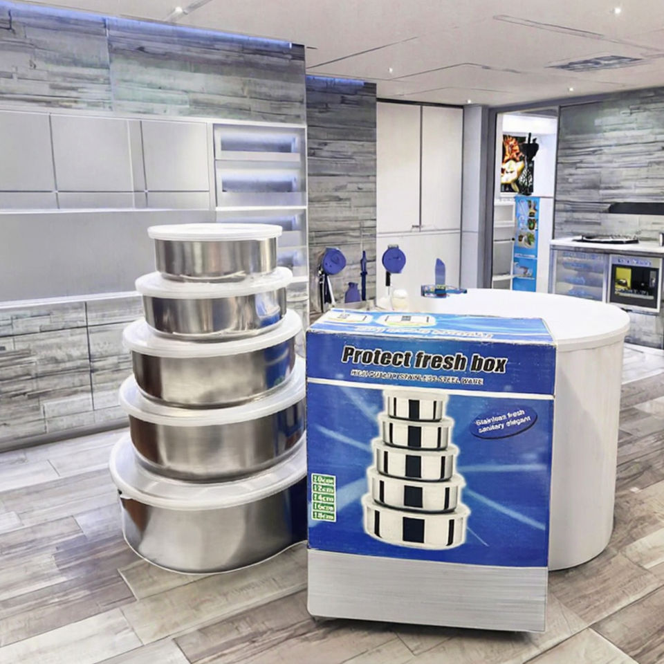 Lot de 5 boîtes de conservation alimentaire modernes en acier inoxydable avec couvercle intérieur, pliables et chauffables pour une conservation optimale