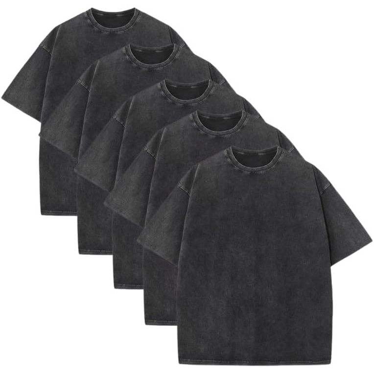5 t-shirts en coton surdimensionnés et lourds pour hommes et femmes, lavage vintage, uni, décontracté, pour l'entraînement