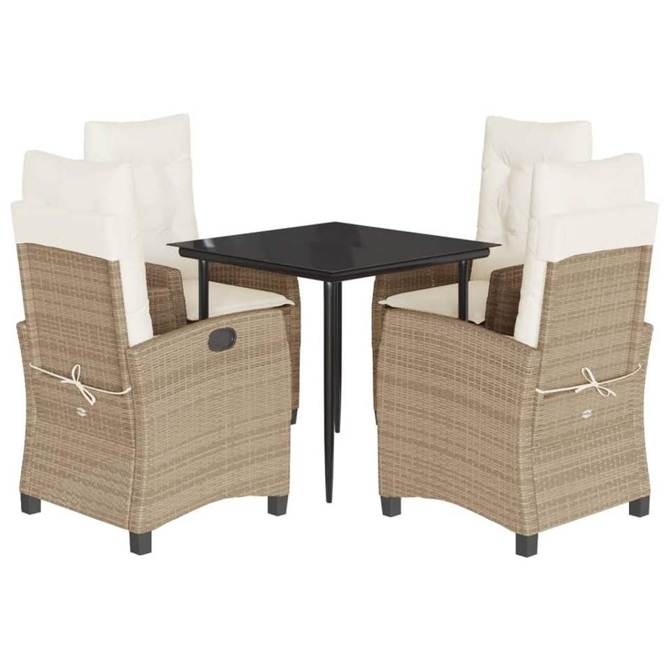 Ensemble de salle à manger de jardin en rotin PE beige 5 pièces, nombreuses places pour dîner en plein air