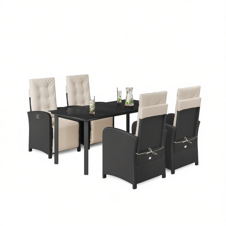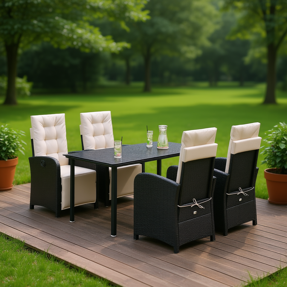 Ensemble de salle à manger de jardin en rotin noir 5 pièces, résistant aux intempéries, mobilier d'extérieur au design contemporain