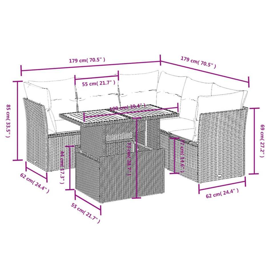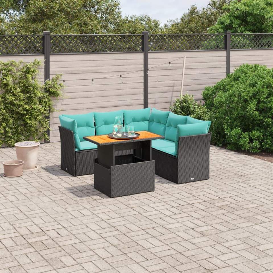Ensemble de canapé de patio en polyrotin noir 5 pièces avec coussins pour usage extérieur