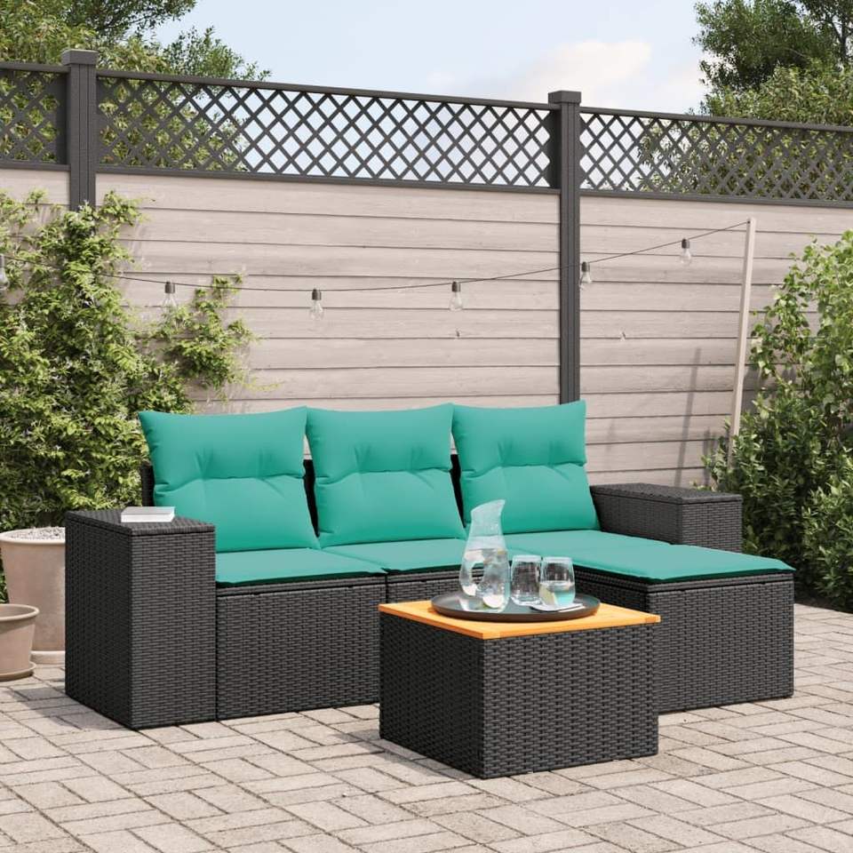 Ensemble de canapés de patio en polyrotin noir 5 pièces avec coussins, élégants ensembles de jardin