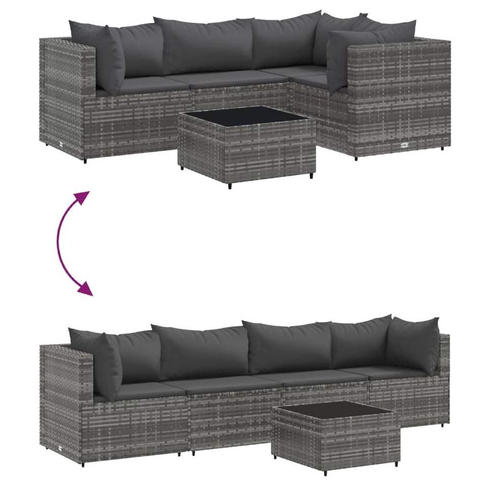 Ensemble de salon de patio en poly rotin gris de 5 pièces avec coussins mobilier d'extérieur durable