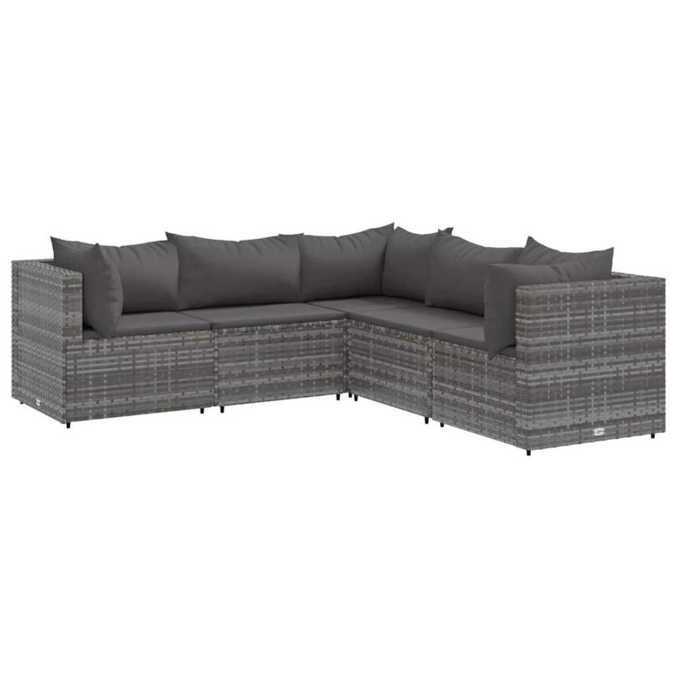 Ensemble de salon de patio en poly rotin gris de 5 pièces avec coussins mobilier d'extérieur durable