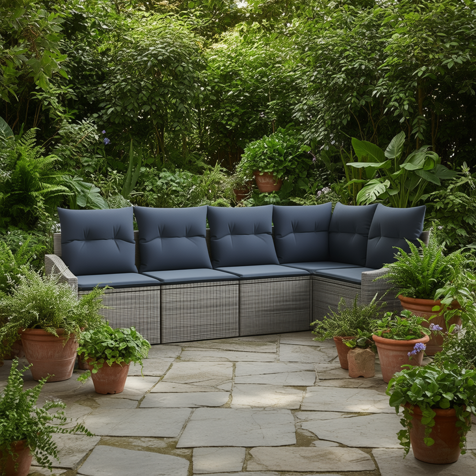 Ensemble de canapés de jardin en polyrotin gris 5 pièces avec coussins, mobilier d'extérieur au design contemporain
