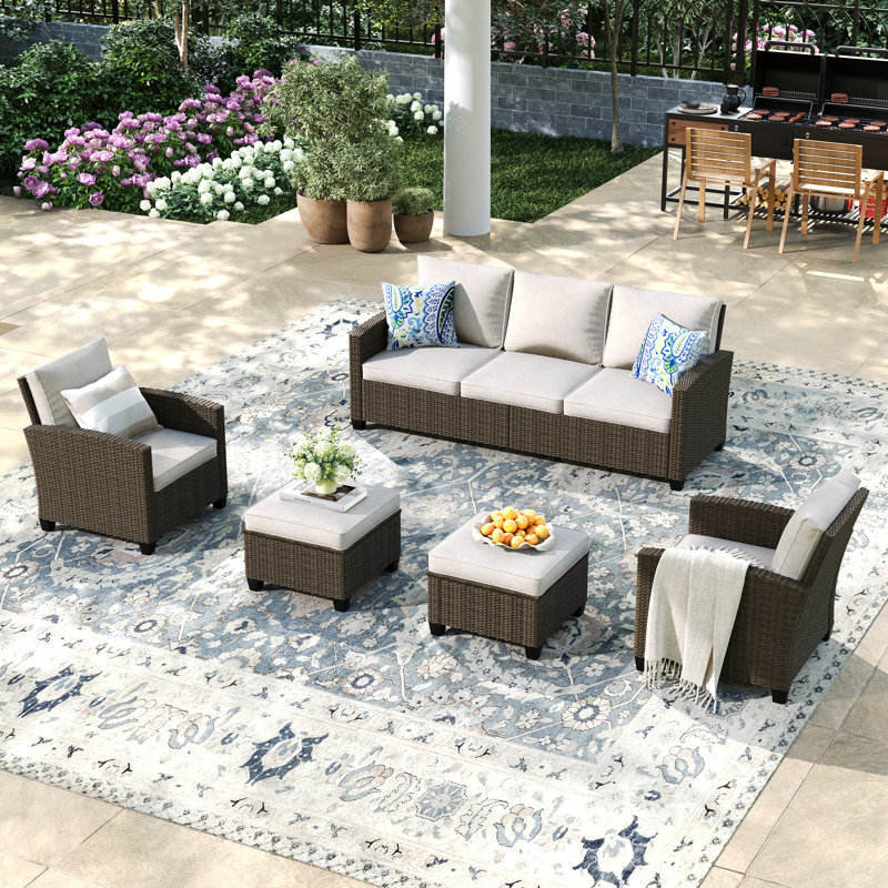 Ensemble de canapés en rotin d'extérieur 5 pièces meubles en osier pour patio salon et salle à manger pour les loisirs