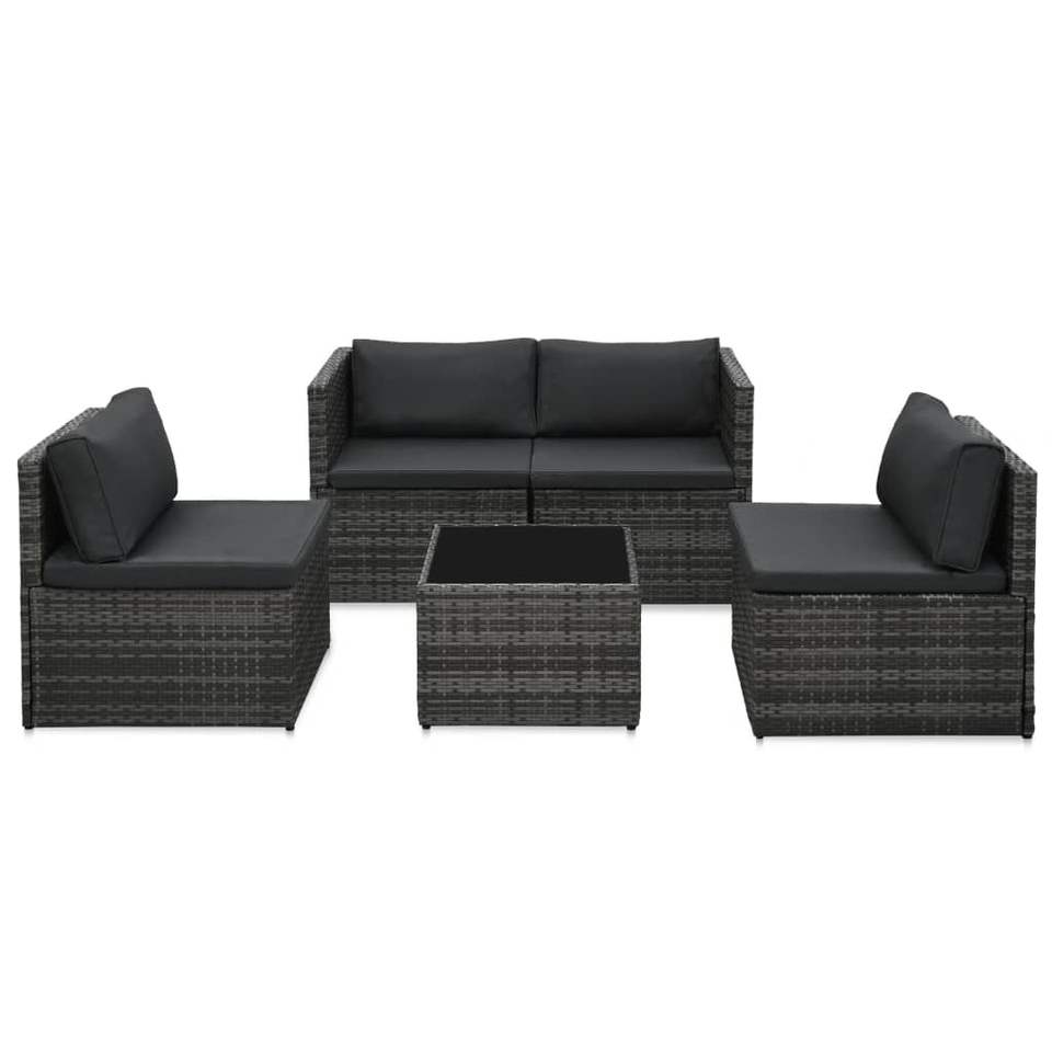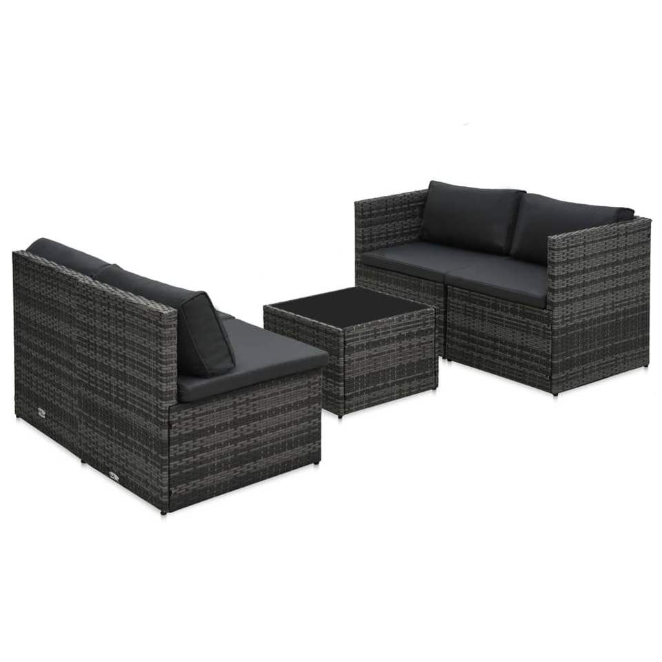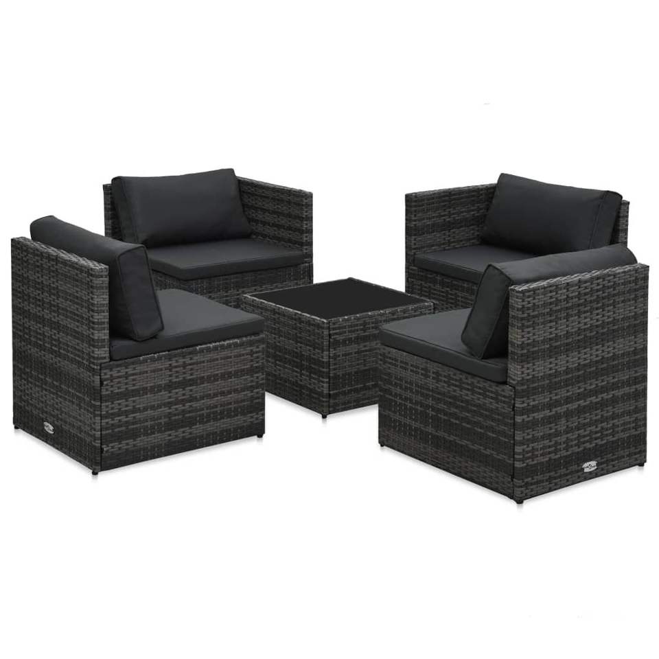 Ensemble de salon de patio gris en rotin poly 5 pièces avec coussins pour les loisirs de jardin