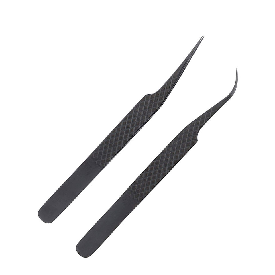 Ensemble de 5 pièces d'extensions de cils à pointe incurvée droite enduite de titane arc-en-ciel pince à épiler en acier inoxydable pour l'application de cils