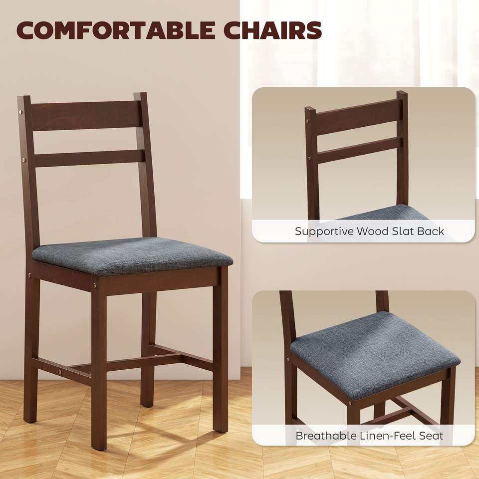 Ensemble de table à manger en bois massif 5 pièces pour 4 personnes, style farmhouse, table de cuisine avec chaises rembourrées, noyer - pour salle à manger