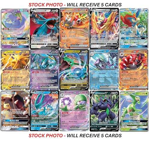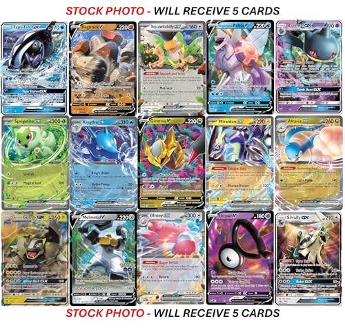 Lot de 5 cartes Pokémon ultra-rares - V, Gx, Ex, variété assortie - Pas de doubles exemplaires