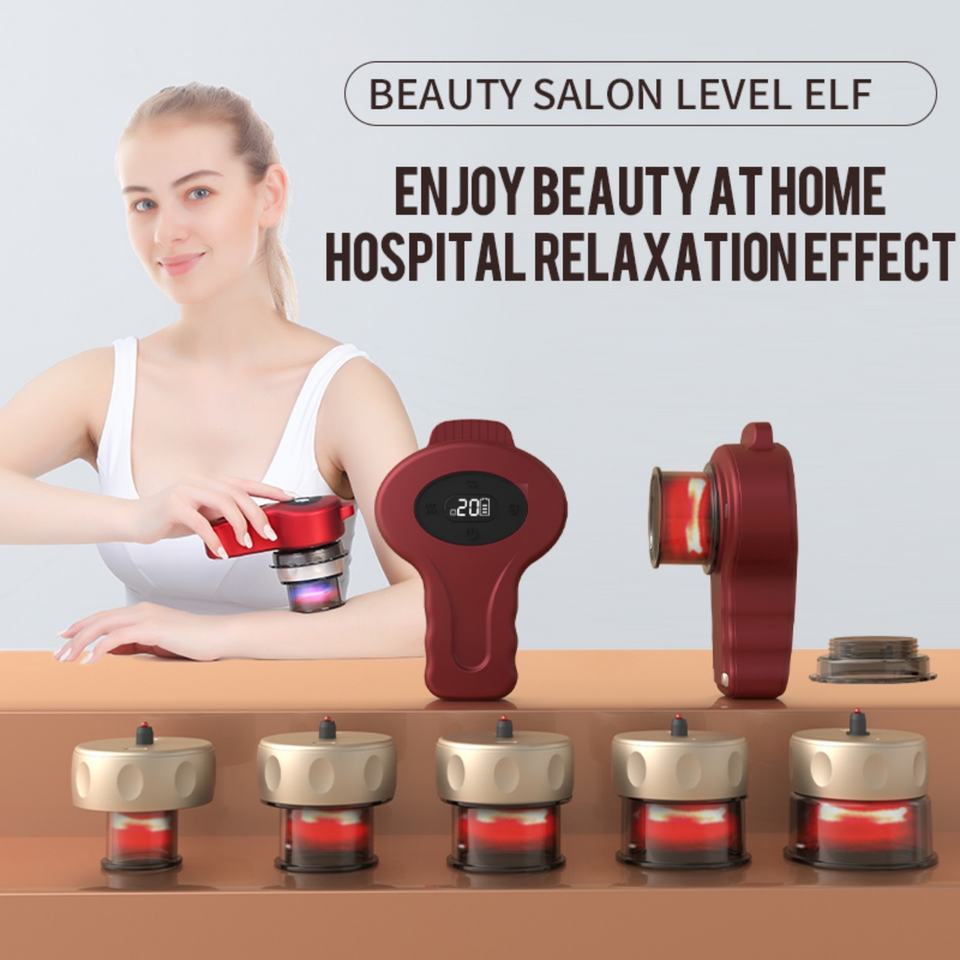 Kit de ventouses électriques portables avec 5 têtes de remplacement, masseur de thérapie par ventouses avec thérapie par lumière rouge et bleue pour soulager la douleur ciblée