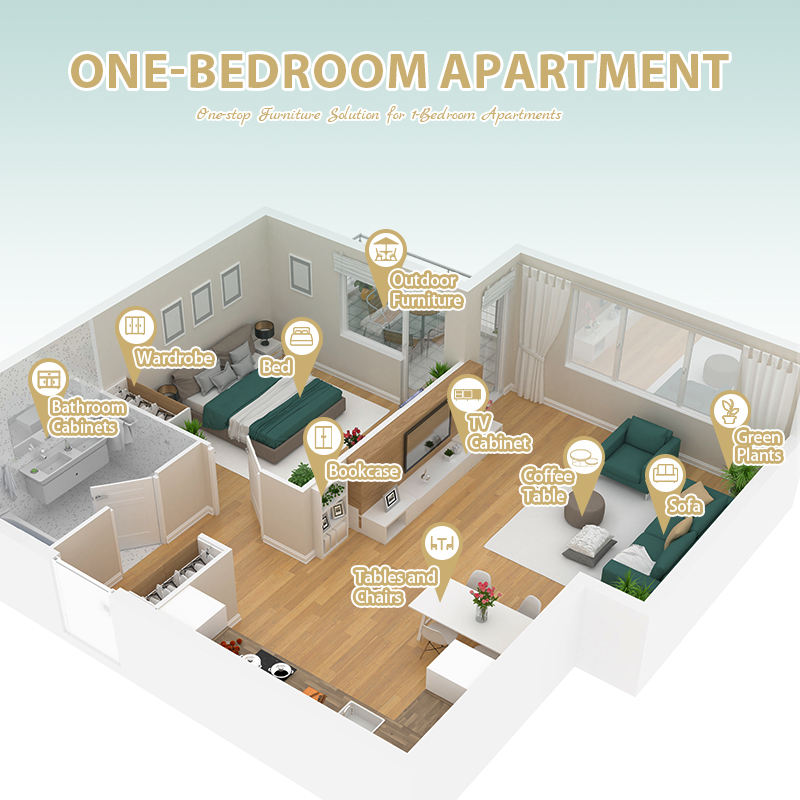 Définir la configuration:Lit + Table de chevet + Bureau + Meuble TV