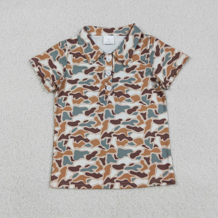 5 styles de polos à manches courtes pour bébés garçons, motif camouflage de chasse du sud, avec boutons