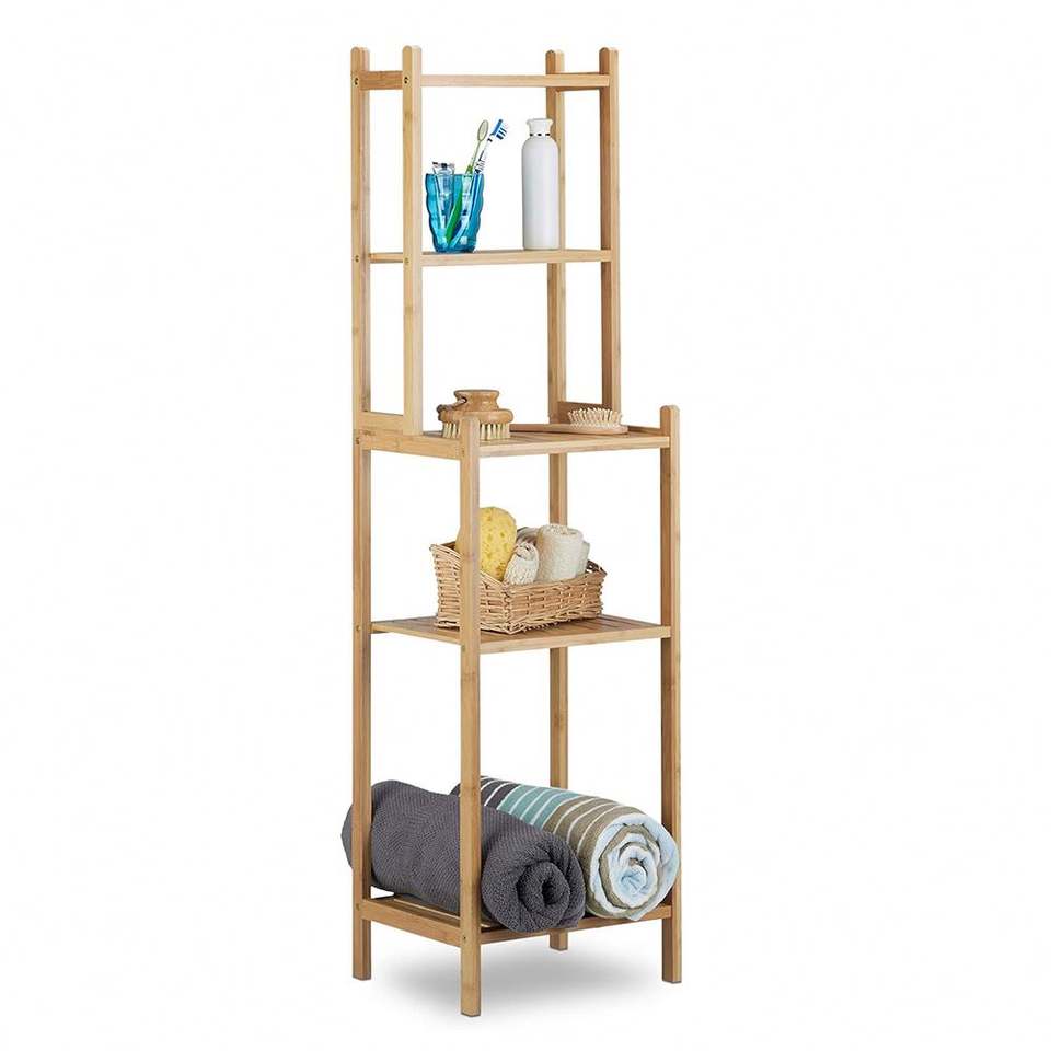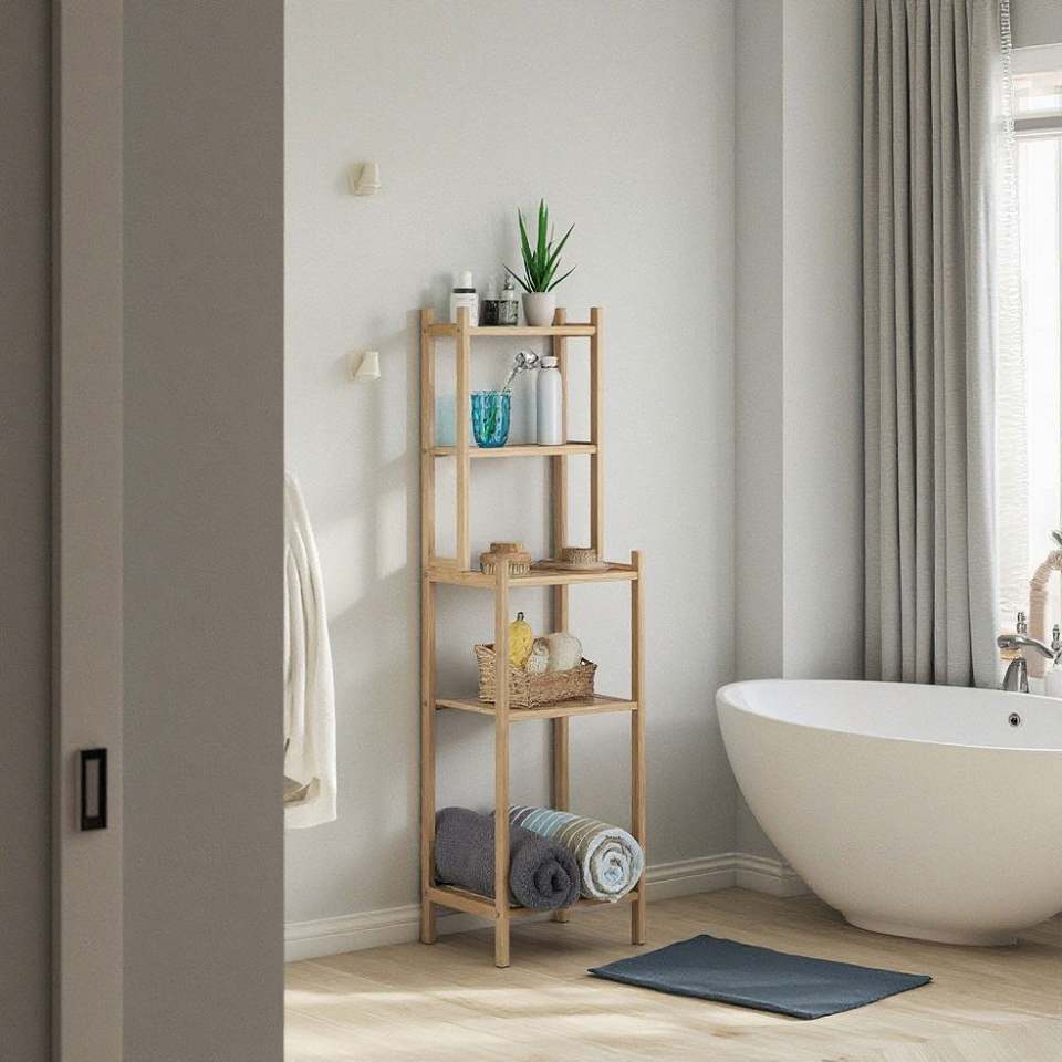 Étagère de rangement en bambou à 5 niveaux, colonne étroite pour espaces restreints, finition laquée, pour salle de bain, cuisine, salon