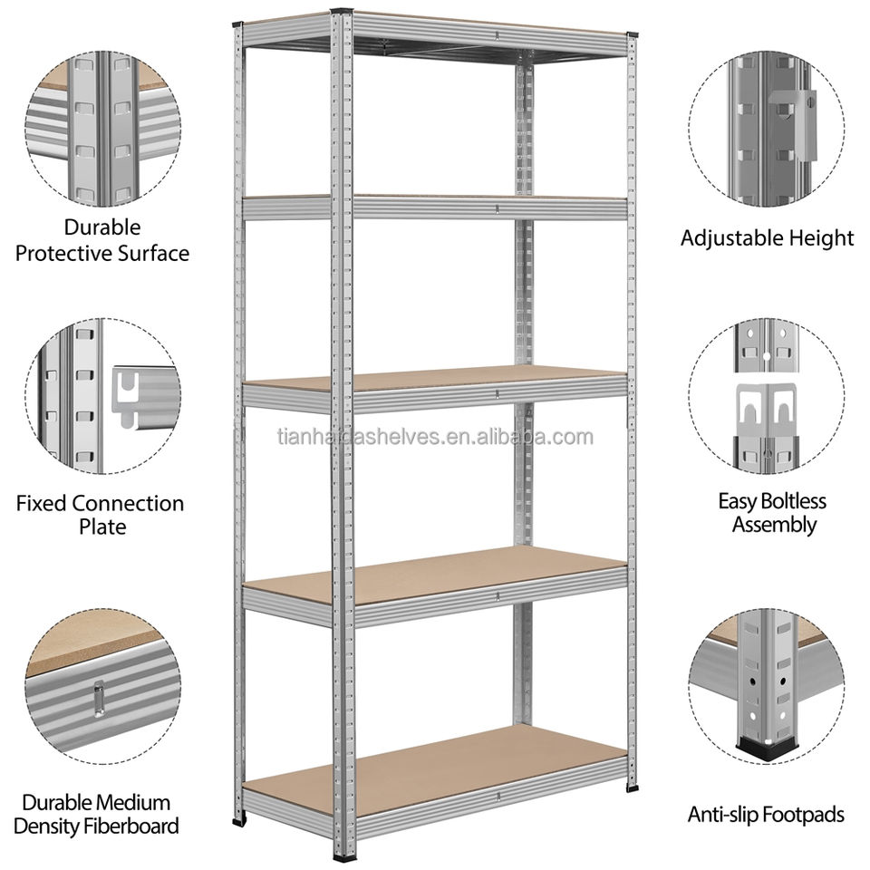 Étagères empilables sans boulons à 5 niveaux, unités de rangement pour entrepôt et garage