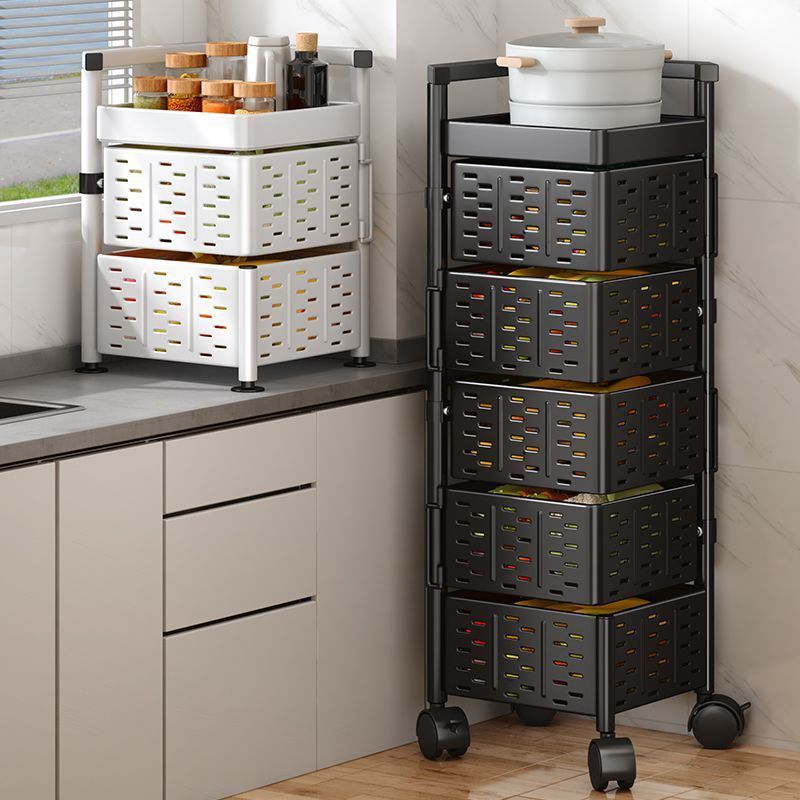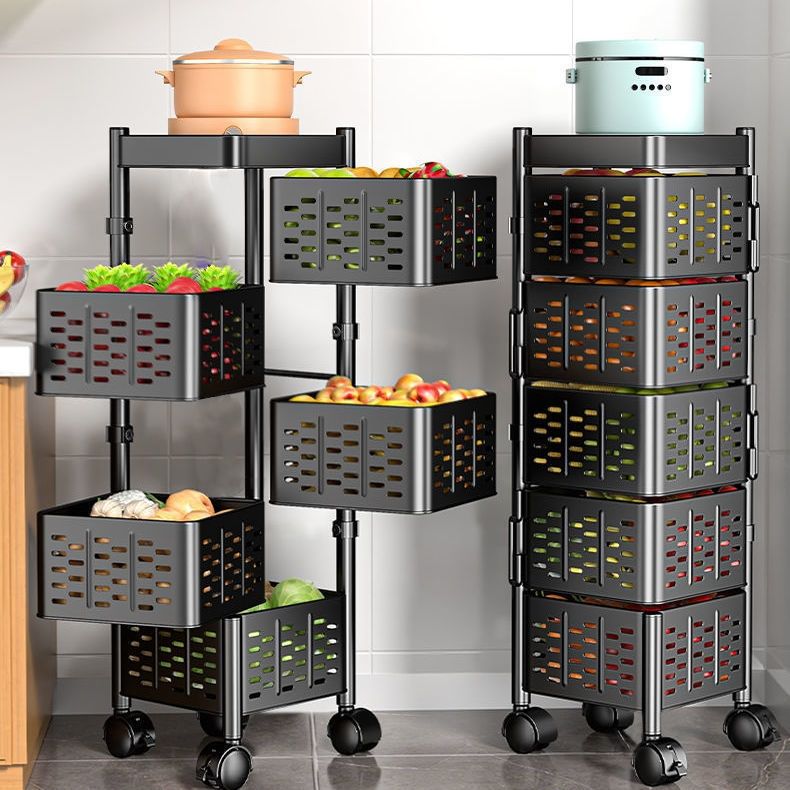 Chariot en métal à 5 niveaux chariot utilitaire roulant pliable pour salle de bains cuisine poussez les paniers de rangement de fruits pliables carrés