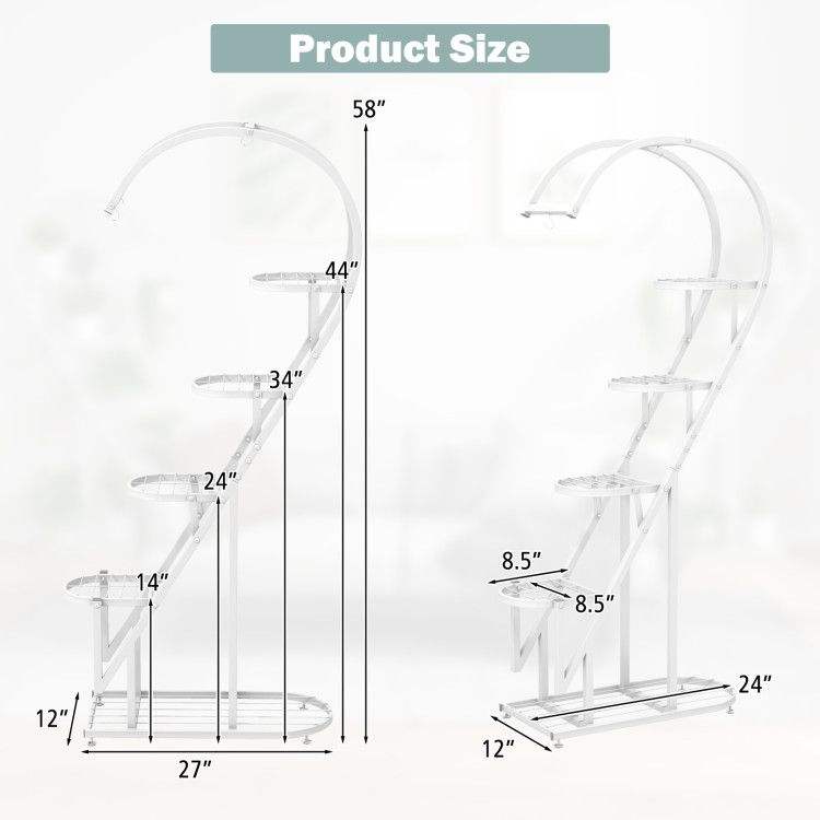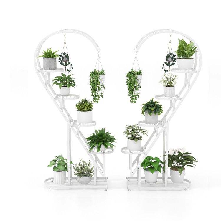 Étagère murale et de présentation en métal à 5 niveaux avec crochet de suspension pour plusieurs plantes