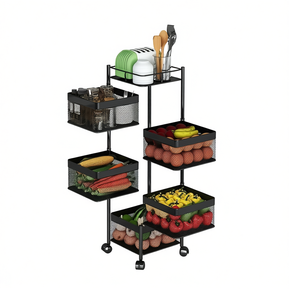 Étagère de rangement rotative en métal à 5 niveaux avec roulettes, chariot de rangement autoportant pour cuisine et salle de bain, pour le stockage des fruits et légumes