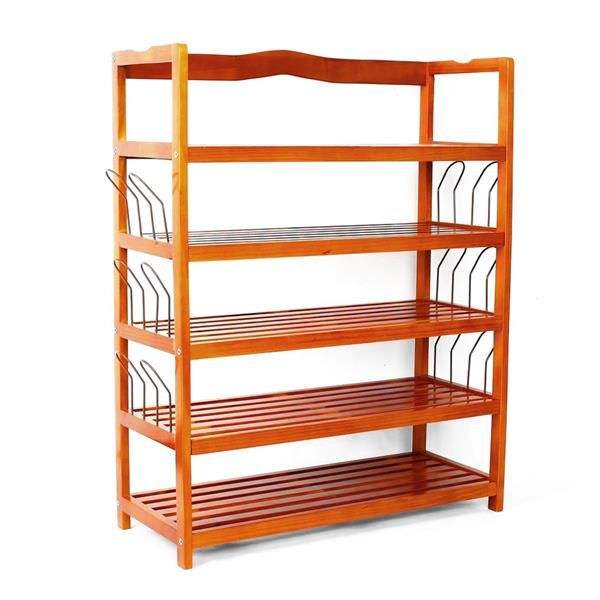Étagère à chaussures simple en bois à 5 niveaux, capacité de 6 paires, couleur bois