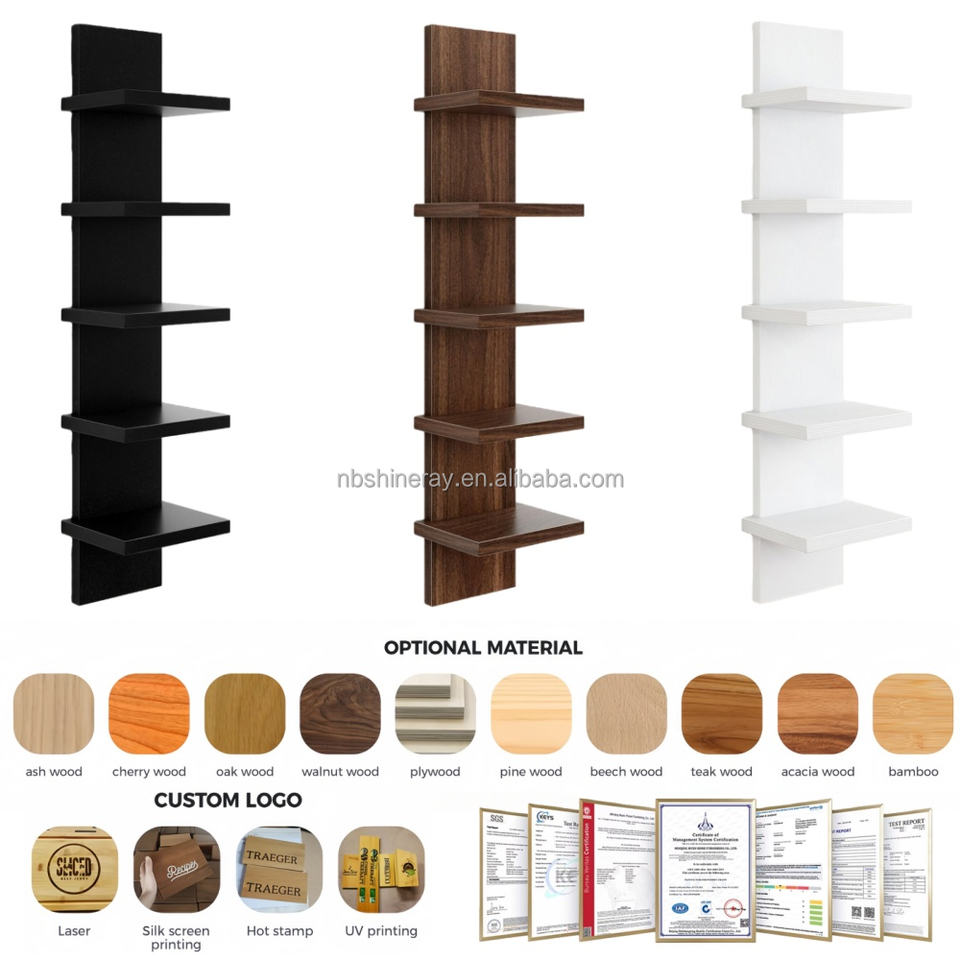 Étagères de Rangement Murales Modernes Multifonctionnelles à 5 Niveaux avec Cadre en Bois Forme Rectangulaire pour Bijoux, Sacs, Salle de Bain, Armoire