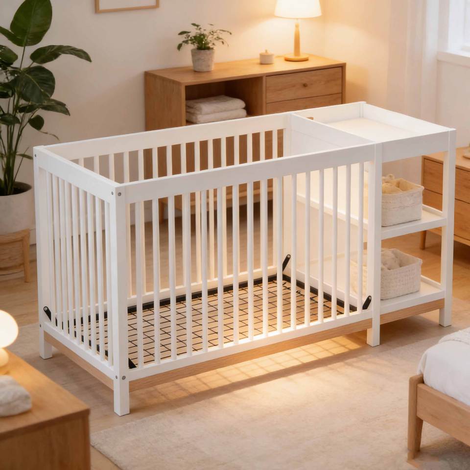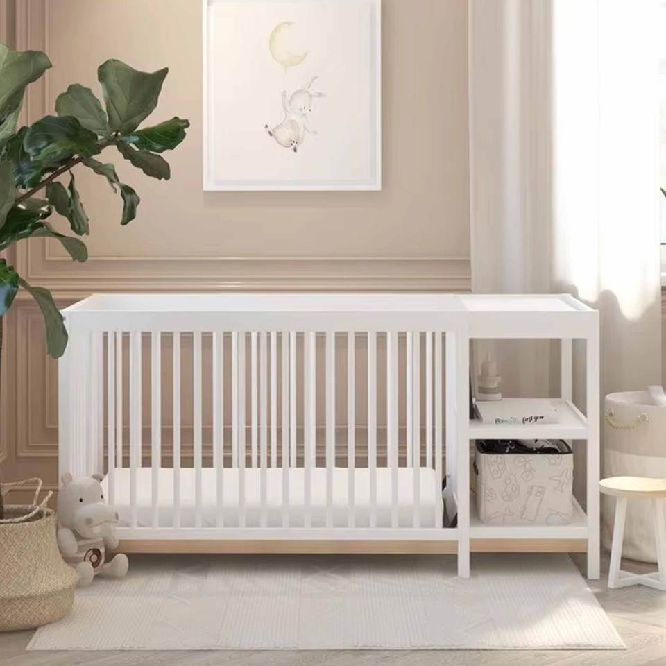 Lit bébé convertible 5-en-1 moderne avec table à langer et tiroir, ensemble de meubles de chambre en bois massif pour maternelle, table à langer de luxe