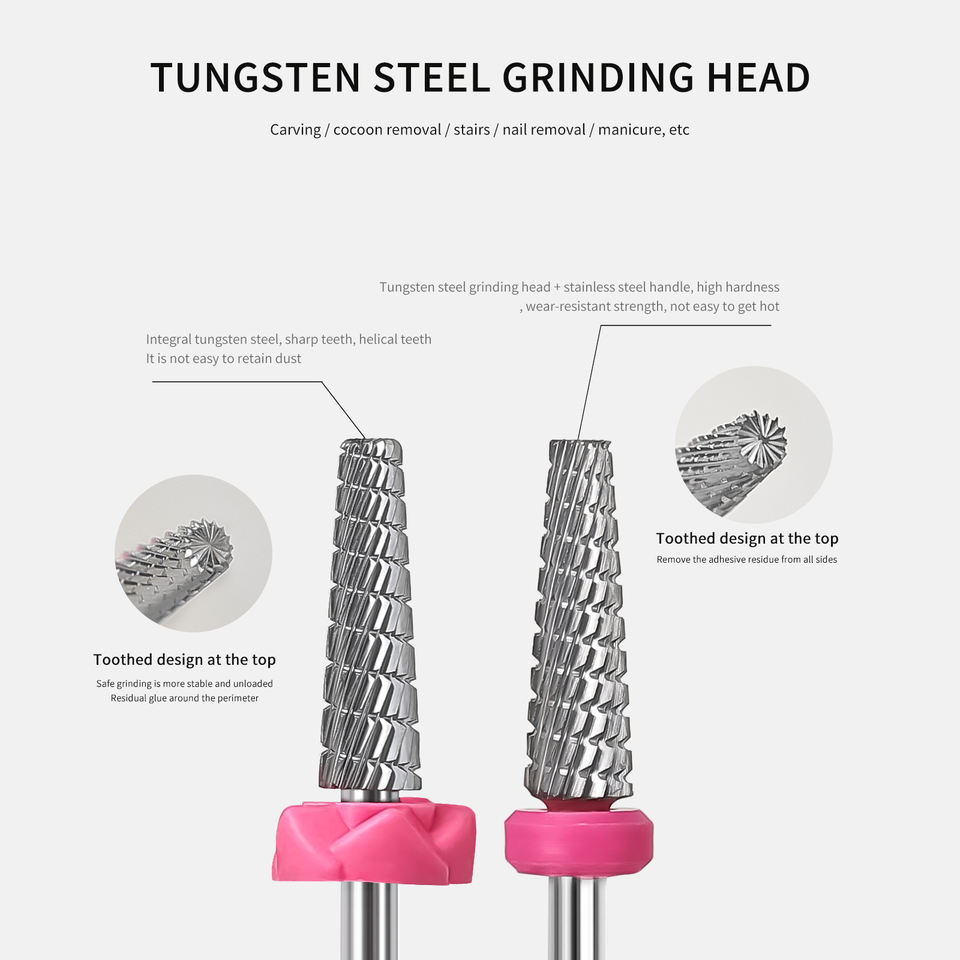 Fraise à ongles en carbure de tungstène hélicoïdale 5 en 1 pour un polissage rapide, tige de 41*4,1 mm, nettoyage des cuticules, pointes acryliques, meulage pour
