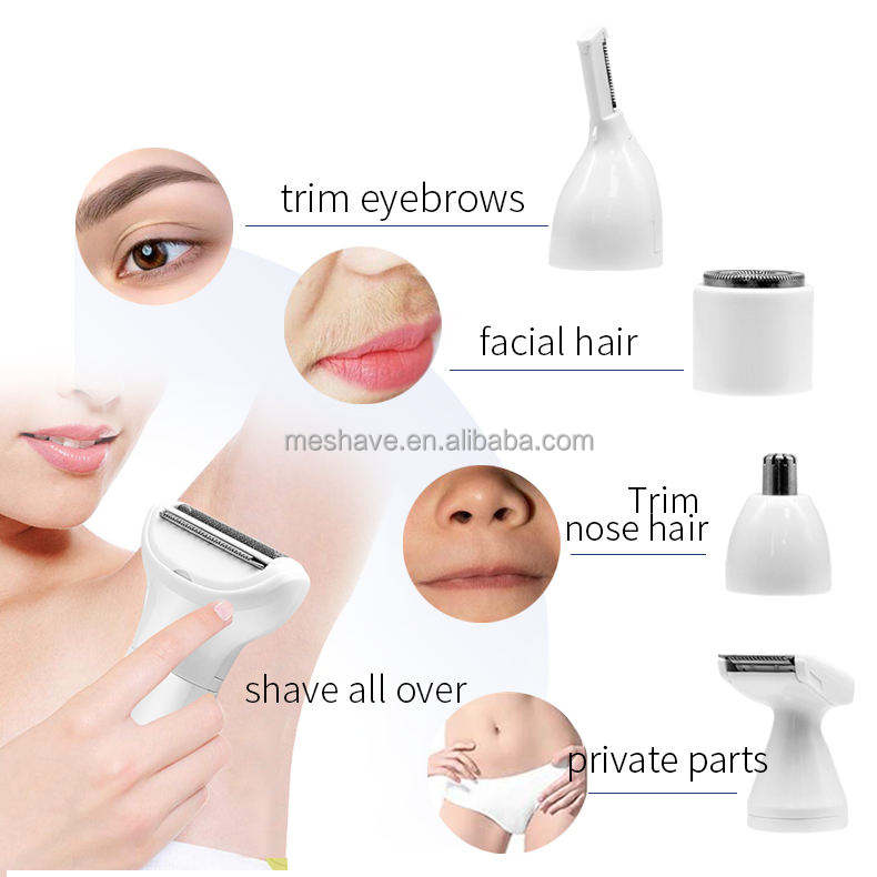 Rasoir électrique 5 en 1 pour femme, étanche, épilateur facial, tondeuse pour poils du corps, bikini, épilateur pour femmes, coupe de cheveux, batterie, usage domestique