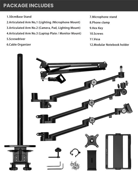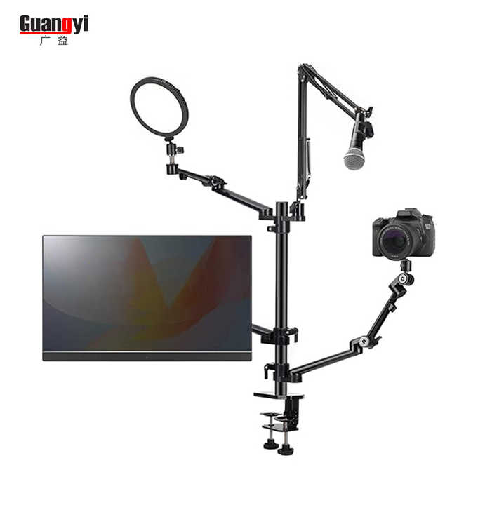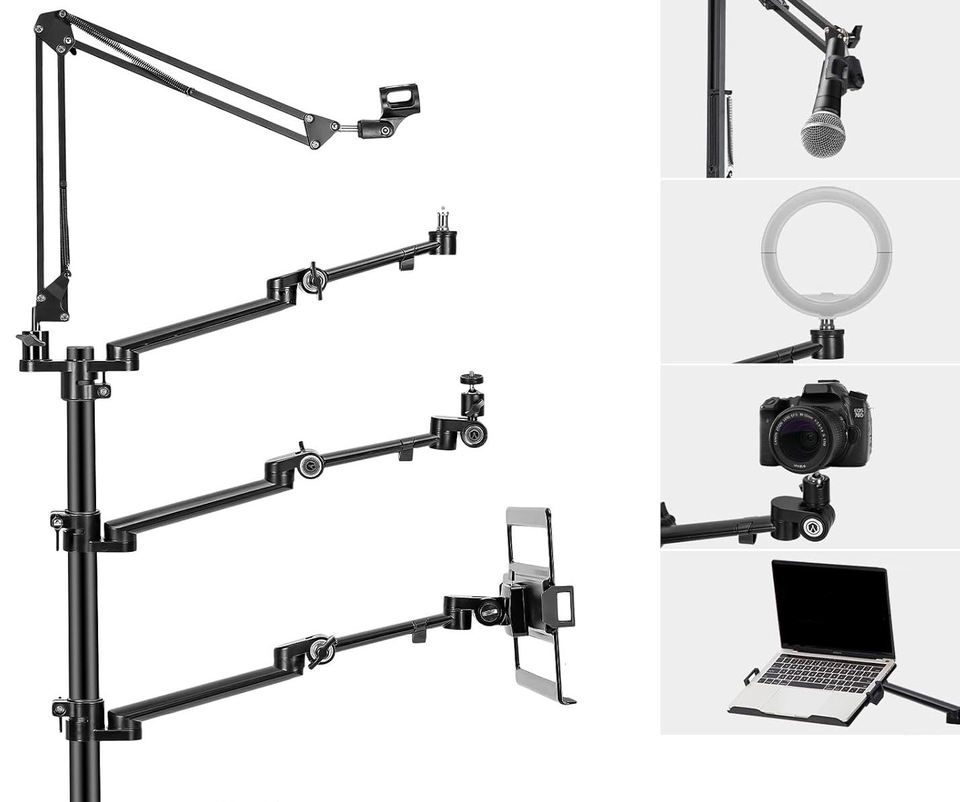 Support de diffusion en direct multifonctionnel 5-en-1 en acrylique pour ordinateur portable, support de lumière, support de microphone, support de caméra, vidéo YouTube et maquillage