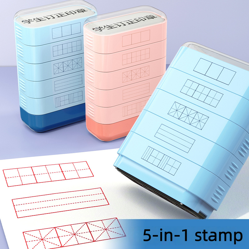 Tampon de correction 5-en-1 pour enseignants : tampon de correction, tampon de récompense et d'encouragement, tampon flash avec phrases