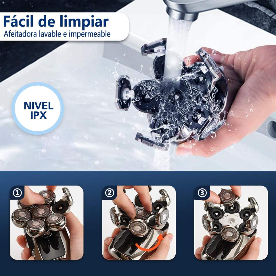 Rasoir électrique rechargeable USB 5 en 1 pour hommes, étanche IPX7, machine à raser avec 8 têtes rotatives, écran LED pour usage corporel