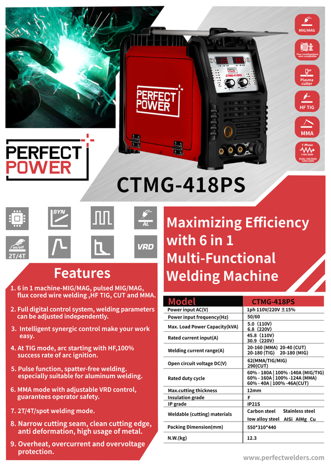 Welding current range(A):20-160(MMA)20-40(CUT)20-180(TIG)20-180(MIG)