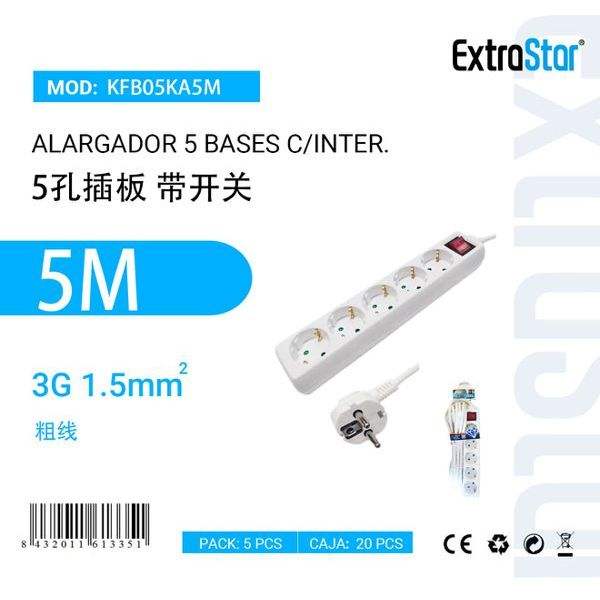 Multiprise 5 prises avec interrupteur, gestion des câbles et accessoires, câble de raccordement 5M pour la maison ou le bureau