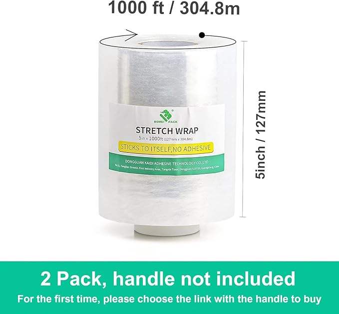 Film étirable mini 5 po x 1000 pi, film plastique industriel auto-adhésif 80 gauge, film rétractable robuste pour déménagement