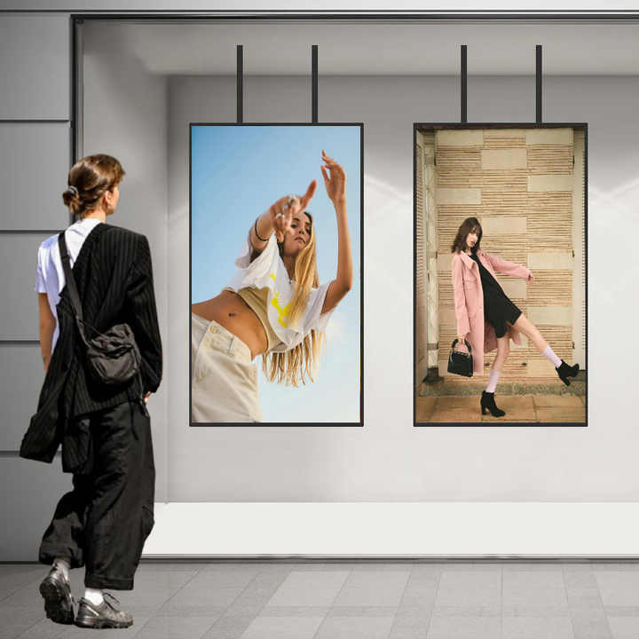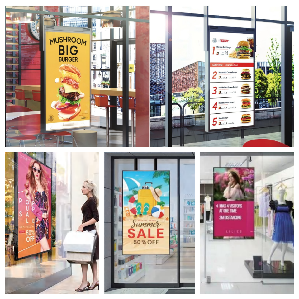 50 55 65 ''haute luminosité Mini LED écran publicitaire Animation Android vitrine suspendue signalisation numérique libre-service
